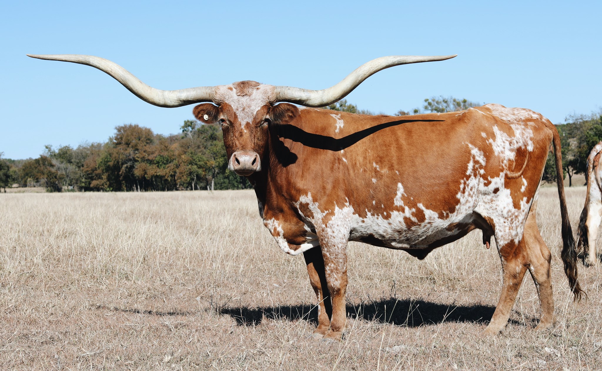 Heifer Producing Machine giving us (8) heifers overall. We have had the misfortune of losing (3) of her heifers at or near birth due to predators and one unknown infection but the (5) living daughters have grown to be superior animals. "Fantasia" has crossed so well with "20 Gauge" giving us (4) beautiful heifers and then we have (1) lateral horn beauty "Helm Fantasy" from the twist producer "Big League". Her 2015 daughter "Helm Tiffany 537" sold for $10,000 at the 2022 Legends Sale and at the time had near 85" ttt & 105" TH. Her 2016 daughter "Helm Celine 632" possessing the very same lateral twist as her dam, was approaching 90" ttt in 2022 and was listed on the "Struthoff Ranch" site for $30,000 plus she was the high seller at the 2017 HSC Bred and Owned Heifer Sale. Another Daughter "Helm Whitney 723" has a ton of sweep horn and has given us a beautiful "Big League" daughter named "Helm Sabrina 991" and then in 2022 daughter "Whitney" gave us the biggest bull ("Cross Tie 242") at weaning we have ever bred. It all goes back to ("Fantasia's) Dam "Sl Selenas Ace" who sold for a combined $37,000 in public Auction. "SL Selenas Ace" ( 18 yrs old in 2023). is still going strong and is a phenomenal outcross to today's genectics. This maternal line is heavy in "Lambs Temptation" and the Legendary "Eileen Day" Breeding. Entire Maternal line are great mothers and milkers. "Fantasia" gave us a bull calf in 2022 from "Stone Red 671" and He is a great looking calf. Momma "Fantasia" still doing an awesome job in every way. To sum the above up "Helm Fantasia" and daughters continue the great production that was passed down from her ancestral line. Great Cow !!!